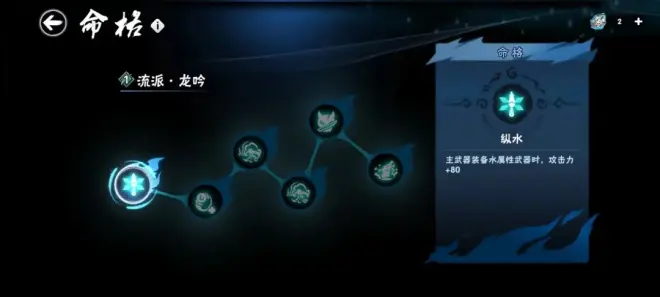 1级纵水:主武器装备水属性武器时,攻击力+80