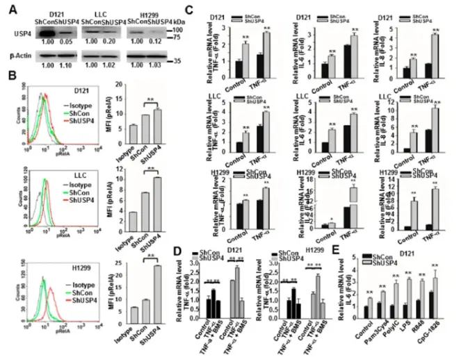 研究结论:USP4是癌细胞炎症状态的一个负调节器。