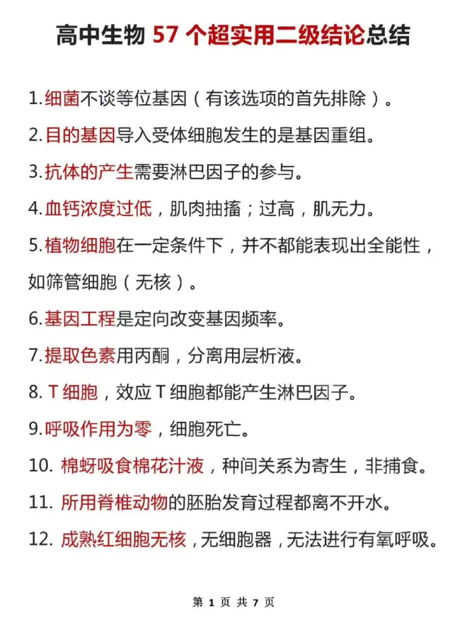 生物57个二级结论!老师不会告诉你的 !!的评论 (共
