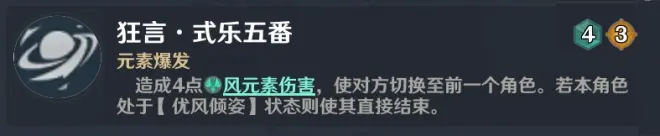 补充:元素战技持续期间内如再次使用,视为快速行动但会结束【优风倾姿】状态且不再造成伤害和充能。与大世界玩法保持一致。(非常抱歉没有加到图片里)