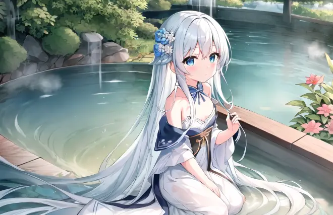 {åºæ¯å ¶ä»:0},bubble,detailed glow,drenched,Tyndall effect,splash,beautiful detailed water,flower,Soak in water,Open-air hot spring