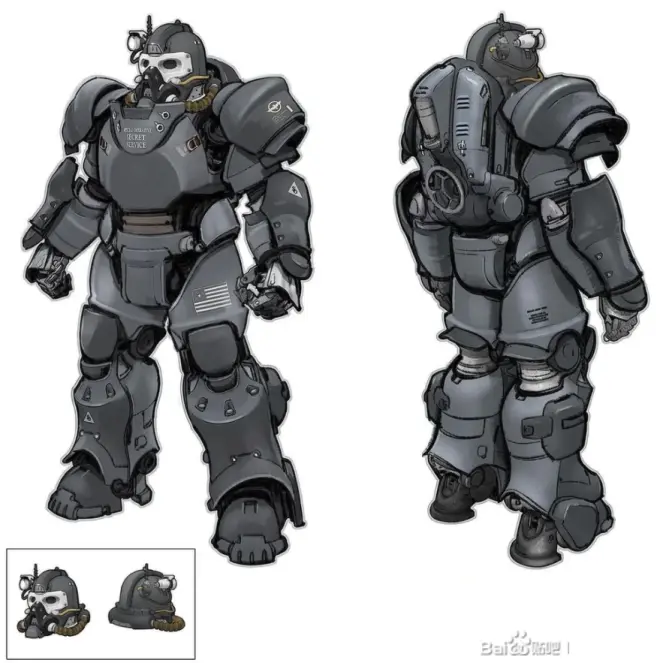 先给大伙看一下辐射的动力装甲设计稿。(没有对比就没有伤害。。即使是照葫芦画瓢的伪劣产品也不太好看)
