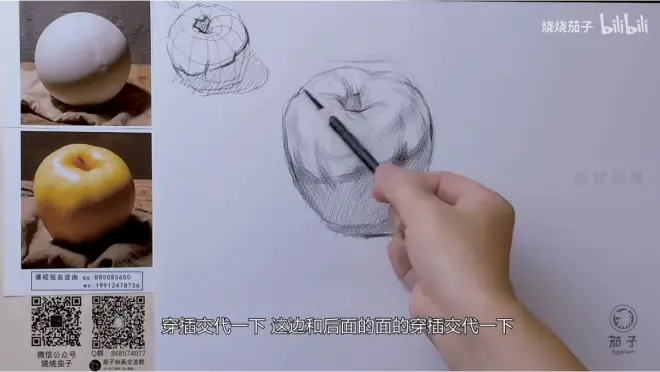 茄子素描-水果静物系列教程大合集-苹果、梨、桔子、橘子、石榴、山竹、光影、...的评论 (共