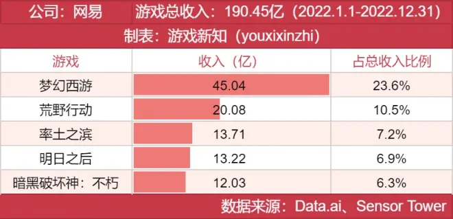 网易:王牌依然能打,新品收获颇丰 网易排到了榜单的第5名。作为腾讯的「老对手」,网易也有几款「看家王牌」。《梦幻西游》作为其吸金能力最强的游戏,从2015年上线以来就一直是iOS畅销榜TOP10的常驻者,至今仍然如此。老牌爆款之外,去年7月上线的《暗黑破坏神:不朽》成为一众新品里的佼佼者,挤到了集团去年游戏收入的第5名。