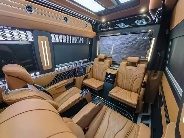 整车采用七座的整体布局,采用液晶升降电视以及吧台打造全隔断模式,并在进口翻转吧台的设计中增设隐藏式“机关”,一键启动,即可舒展为变为两张秘书座,将奢阔与实用结合的惟妙惟肖。