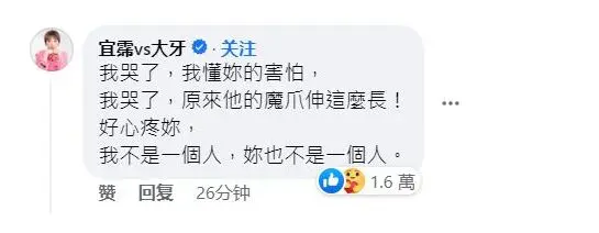 最后,大牙在评论区回应,我懂你的害怕,原来他的魔爪深的那么长,心疼你。