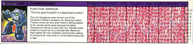 烈焰\火羽Flamefeather(G1)是唯一一个因过于暴力而被军事学院开除的霸天虎Decepticon