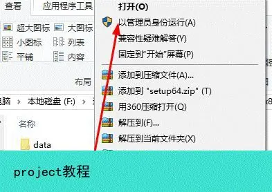 3、鼠标右击“setup64.exe”(电脑是64位的点击setup64.exe,电脑是32位的点击setup32.exe),以管理员身份运行,Project2016开始进入安装;