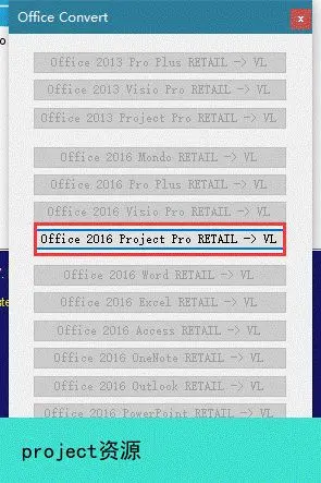 12、选择“Office 2016Project Pro Plus RETAIL ->VL";