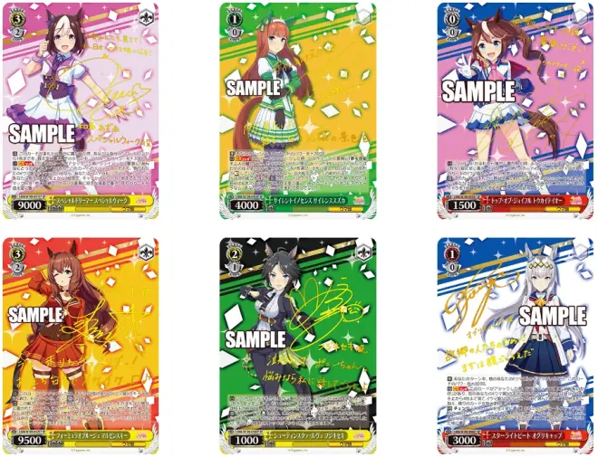 补充包的收录卡多达155种,不但能够强化早先发售的2款预组,还能单独构筑卡组。收录82位赛马娘的卡牌,还会收录特雷森学园相关人士的卡牌!本次补充包收录的声优签名烫金闪卡多达70种,收藏性极高!