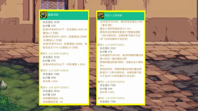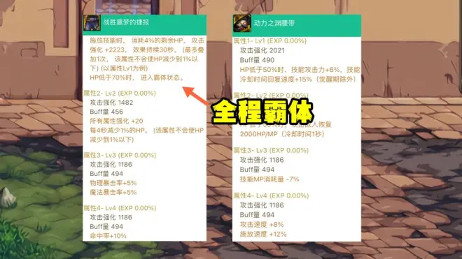 左槽:生命的喘息,防御7000、攻击强化2223、技攻7%、攻速8%。