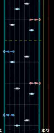 方向键只能靠基本功或者记方向,没什么好说的;最后两轨的双押方向键从尾部划(也就是从1,7轨往外划),同时位移幅度尽量小点避免之后的交互late。