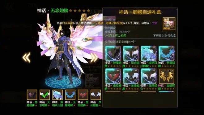 下面我们就继续来看看真勇闯阿拉德的翅膀、光环、武器装本系统,是不是最精致的,我个人感觉是最精致的也是最完善的,还有套装系列,属性大大加强。
