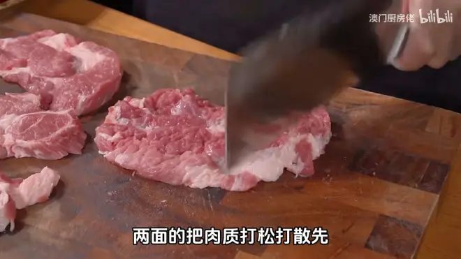 用刀背把梅头猪扒两面打松散