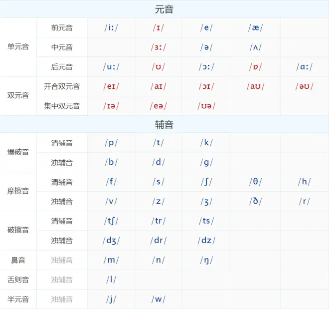 成对清辅音(10个):/p/ /t/ /k/ /f/ /s/ /ʃ/ /θ/ /tʃ/ /tr/ /ts/