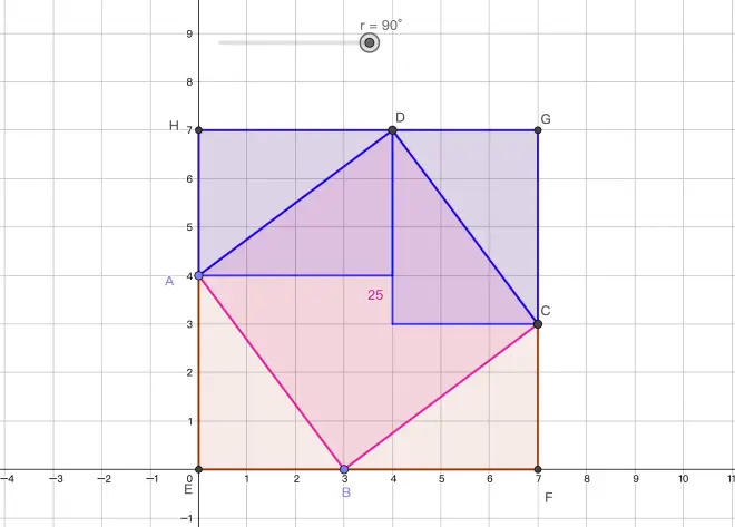据说毕达哥拉斯观察地砖就看出毕氏定理,这次将从弦图搭配 Geogebra 的旋转功能来证明毕氏定理。