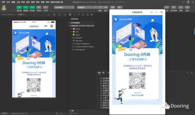 在平台搭建完页面后,可以将页面一键导出为标准的HTML、CSS和JavaScript代码。这给了用户一个完整的代码结构和资源文件,可以将页面用于离线部署,不需要依赖在线平台,从而保障了页面的稳定性和访问性能且大大降低了工具部署成本,Dooring也支持一键导出小程序代码,代码可立即运行在抖音和微信等开发平台。
