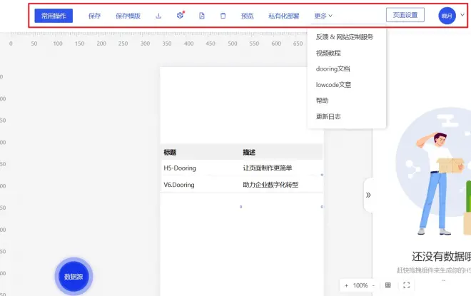 过去想要制作一个简单的页面,也需要花费很多时间学习前端知识,或者让专业技术人员开发。而市面上的低代码或零代码产品,通常需要使用者掌握一定的编写代码能力,使用门槛较高。现在使用Dooring,即便是不懂技术的小白也能借助Dooring丰富的模板或者组件,快速搭建出各种H5页面,甚至轻量的H5应用和小程序等也能搭建出来。Dooring的强大,在于你各种常见页面需求,只要充分利用Dooring强大的原子化组件,通过组件的组合叠加,总能找到对应的解决方案,满足个性化需求。