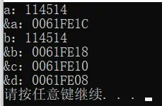 1、类似与c、d这样,不指向具体的数值,而指向某个地址的,叫做指针「type *var_name;」。