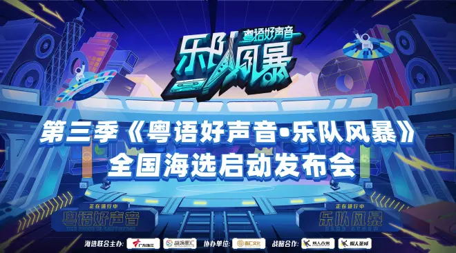 2023年7月2日,由广东广播电视台珠江频道、盛娱星汇文化传播有限公司海选联合主办的年度大型音乐竞演类赛事——第三季《粤语好声音-乐队风暴》全国海选启动发布会,如期在广州市增城区1978电影小镇隆重举行!2023年,《粤语好声音-乐队风暴》再次狂热来袭!