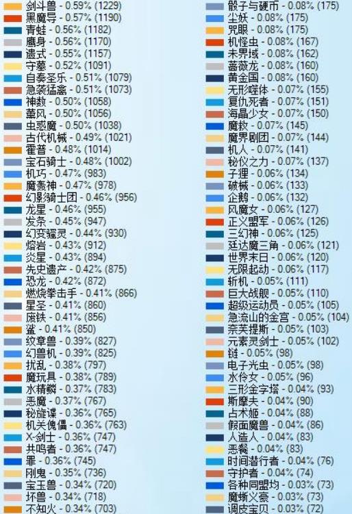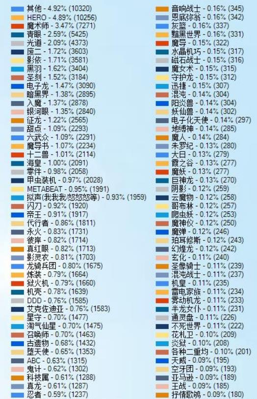 5.征龙的统计数量比预想中少,应该是受到后面禁止的影响(换言之,没有新的征龙卡组了)。另外,挂在其他卡组里当副轴的情况也不会计入其中。