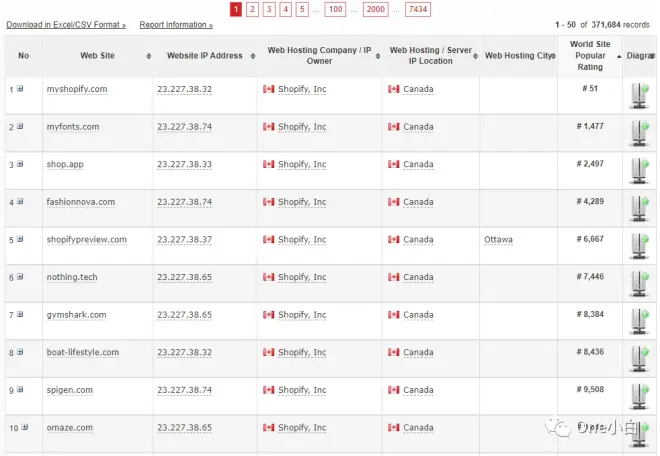 利用 myip.ms 这个全球浏览器,主机信息,网站和 IP 数据库工具,可查看托管在 Shopify 服务器上的所有 Shopify 店铺列表。