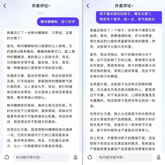 不喜欢某个菜色?你甚至可以让AI帮你写差评!当然,首先是不能完全领悟我提出的文案长度需求,其次是AI的逻辑味和中立客观语气挺浓的……