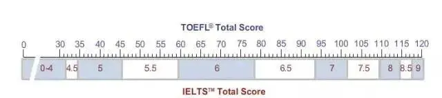 托福雅思分数对照表
