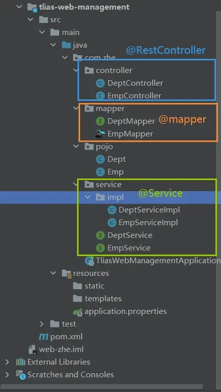 准备对应的Mapper、Service(接口、实现类)、Controller基础结构