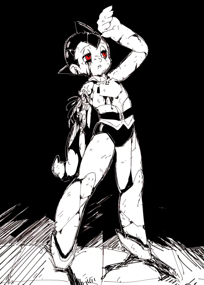 【发现新猎场,有很多无助者】 一个黑影在好似水的物质中前进着。 看它身上,两个,四个,六个亮闪闪的红点从黑影中显现,它们水平排开,好像成熟的樱桃般美丽,却又透着不祥的恶意。 承载这六个红点的,是一张皱巴巴的、没有五官的棕色“头颅”,底下拖着几条细长的触手,不耐烦地来回荡漾着。 紧贴着这足有一人高的扇形头颅的,是直径三米多的晶莹洁白球体,它鼓鼓囊囊的,好像刚装了什么液体似的。 这球囊是如此之大,以至于可能会让人误以为球囊是捕食者,而长着红眼和触手的“脑袋”则是被白球捕食、被逐步吞进体内的猎物。 若有人类能看到这黑影的全貌,脑海里第一个能想到的必然是地球上的蜱虫。 但这东西远比蜱虫更强大,更饥饿,更狡猾。 它就这样游弋在黑暗的“水”中,气泡不时从头上那六个红点里冒出,一种来源不明的力量正推动它向前游去。 【大量,巨量,丰收,应该分享,需要开“门”】 横亘全身的头脑里闪过狡猾的策略,六个小红眼睛——但它并无人类所拥有的感光视力——像嗅到鲜血味道的野兽般,盯着不远处的一个光源。 随着黑影的继续前进,好像走进了一个剧院的门口般,四周豁然开朗,光明蔓延开来,占据了它的整个视野。 【八十亿个…一千亿个…无穷的待宰者,这就是大浪尽头的宝地】 黑影因为兴奋而颤抖连连。 周围的“水”变成了好似地球上海水的深蓝色,在这水里,他看到了人类,看到了无数大小动物,还有数之不尽的非人类物种,全都浮在“水”中,呼呼大睡着。 六个红眼睛一转,它盯上了一个长着橄榄球形脑袋与硕大鼻子,一脸疲倦相,穿着标有“科学省”字样白大衣的老头。 【这个人,很有想法,我开动了…】 一个突如其来的异象打断了它的食欲,那是它身后的一道金光,从那光里,一个娇小的人形身影冒了出来,他纯黑色的光滑头顶竖着两个小犄角,好似人类男孩的身体上只穿了一条黑绿相间的内裤,脚上瞪着颜色鲜艳的赤红长靴。 那正是阿童木,他此时与其他漂在“水”里的人们一样,同样是一脸睡意。 【是寂静王的无魂者!紧急规避】 一道念头闪过,黑影已缩到一边去了,它饥饿,但它也不缺耐心,为了吃上这顿美味的灵魂大餐,它不介意再在某个角落里躲上几百年。 感觉自己能听到耳边有一阵阵水声划过,但这些声音太小太模糊,他说不清它们到底是啥。 这是阿童木的“梦”,他常听人类提起这个事物,不同于休眠时全身一点动静都没有的机器,人睡觉时脑海里就会出现很多稀奇古怪的、现实里不会出现的东西,且当人一醒来,很快就会把这些东西忘得一干二净。 科学家们对梦到底是什么一直众说纷纭,有人认为它是人脑整理清醒时记忆的表现,有人认为它是人脑独特的“消化营养”的手段,有极端的学者认为它是非正常的病态,如果有人能记得自己的梦,那其身体多半有问题… …对于这个问题,阿童木有自己独特的一套见解,因为根据他目前的了解,他似乎是唯一一个能做梦的机器人。 即便机器人比一般的机器更加智能化,但做梦这个能力目前似乎还只是阿童木的特权。 他向自己的人类导师“茶水博士”说明过这点,而博士只认为这是阿童木高级的电子头脑整理清醒时采集到的信息的表现,就跟人类的“梦”一样。 但这无法解释那一个问题: 阿童木做梦时,总能不时听到水声,有时甚至会感觉到自己正飘在不可名状的液体里,每场梦都会这样,但他看不见任何与此相关的图像,就好像这液体是透明的一般。 当他眼前闪过白天与坏人发生的战斗时,那水声存在。 当机器人妹妹乌兰在他怀里撒娇的场景闪现出来时,水声依然存在。 当他的意识想要沐浴在人性光芒中时,水声仍在响起。 有时,水声和反映其存在的液体甚至会扭曲他梦里的记忆,就像一本书突然掉进了水里似的,纸张被泡软碎开,字幕被扭曲搅散,变回化开的墨水,导致整篇文字的意思大变。 随着时间的推移,这个表现正变得愈加强烈,强到他能听出“海洋”的环境音。 他的机器人之梦,不同于其他任何人类,就像一片深海般,他正在里面越沉越深,水的感觉越来越强。 对这点,茶水博士也只能以“部件老化”来解释了,这倒是给了阿童木一个很不错的更换机械零件的理由,但除此之外,其真相依然是不明不白。 一切都在今晚改变了。 梦一如既往地开始了,但这一次,他眼前出现的不是白天记忆的碎片,而是一片漆黑。 他回想着今天发生的事,他去学校正常上学,没有任何意外…安静上完了一天的课,学了数学、历史、物理等等…体育课的足球赛上,他因为想用人类的力气传球而导致足球被同班、对方的四部源同学截了下来,虽然阿童木的队最后惜败,但阿童木的心里仍很欣喜,他们战得很尽力,结果已不重要…回家后,乌兰照常扑进他怀里问候他,自己又帮一起在学校上学的爸爸妈妈整理功课…只有一个怪事,他们班的钟表今天坏了,坏在了13点13分13秒,一个美丽的巧合,无奈自己很快把它错位的部件修好了,使这巧合转瞬即逝。 他已回想了许久,按照常理,此时眼前应该出现大堆图像了,然而这次并没有,阿童木的眼前还是一片漆黑。 咕噜咕噜的水声依然不时响起,但这次有点不一样,阿童木在黑暗中看到了一些相关的东西:一连串气泡。 气泡里面映出的是深蓝色的海水,这海水猛然扩大至他的整个视野,像砸来的海啸般,淹没了阿童木。 他奋力剥开海水,意志一动,脚下的火