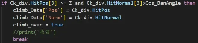 这里用TraceLine来判断,相当于射出一条线,然后返回线碰到的位置和法向量。