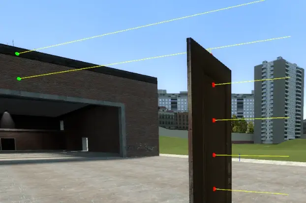 首先是水平扫描,在玩家位置创建一组间隔均匀、长度50左右的探测器