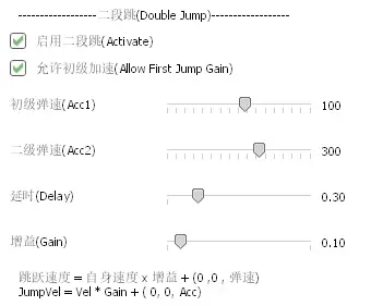 以上代码就能获取玩家的跳跃键状态,如果说起跳时在地上,那么创建一个0.3s的定时器,定时器到期后判断跳跃键是否按下,如果满足条件就给玩家加个向上的速度。