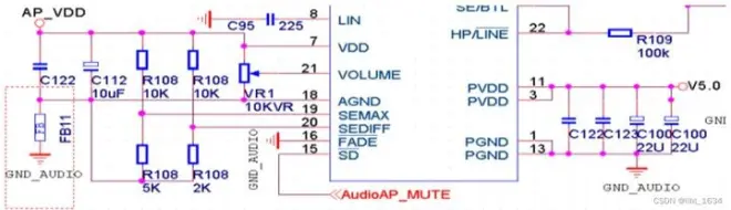 总结:分割地将对PCB Layout提出很高的要求,若 PCB 工程师不精通原理图,不完全了解每条信号的返回路径,地分割不合理很容易把信号的最佳返回路经给切断了,被切断最佳返回路经的信号必须要通过别的途径返回,这样返回信号很可能会出现狼入羊群、羊入狼群的不良现象。环路面积的增加也会使得 EMI 辐射更加严重。所以尽量采用统一地,对不同类型的地可用磁珠隔离。如下图虚线框内磁珠隔离了 AGND 和 PGND。