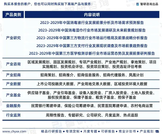 1:本报告核心数据更新至2022年12月,以中国大陆地区数据为主;预测区间涵盖2023-2029年,数据内容涉及第三方消毒行业产值、市场规模、市场分布、市场细分等。