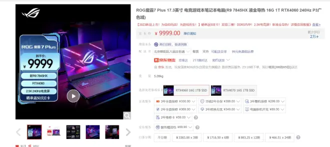 8:ROG魔霸7Plus 京东9999 拼多多9499