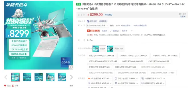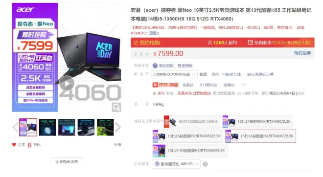 3:宏碁掠夺者·擎Neo RTX4060版本 京东7599 拼多多6599