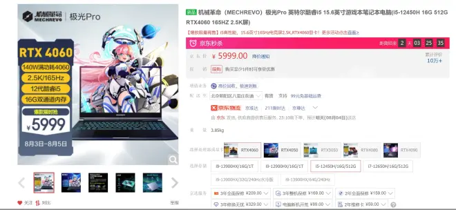 i5 +rtx4060版本 京东之前7699现在8899 拼多多7099
