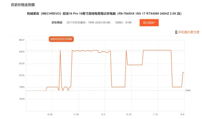 5:机械革命蛟龙16pro 京东8199(白) 拼多多7738(灰)8194(白)