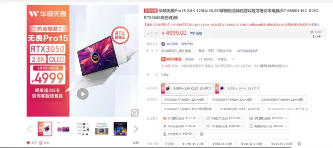 1:华硕无畏Pro15 Rtx3050版本 京东4999 拼多多4789