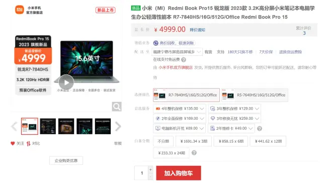 4:Redmi Book Pro15 锐龙版 京东4999 拼多多4999(首发价)