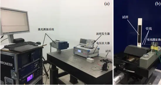 实验概要:搭建实验测试系统,将信号发生器连接至高压放大器(ATA-2081),组合成一个可输出峰到峰电压为-400~400V、频率0~60Mhz的多种波形信号的电压源。高压放大器的输出端分别与骨悬臂梁试样两侧表面的引出线相连接,通过设置信号放大器的输出信号的波形、频率以及高压放大的放大倍数,可以给骨悬臂梁试样施加一系列给定频率范围的扫频电压,也可施加单个固定频率和幅值的电压。