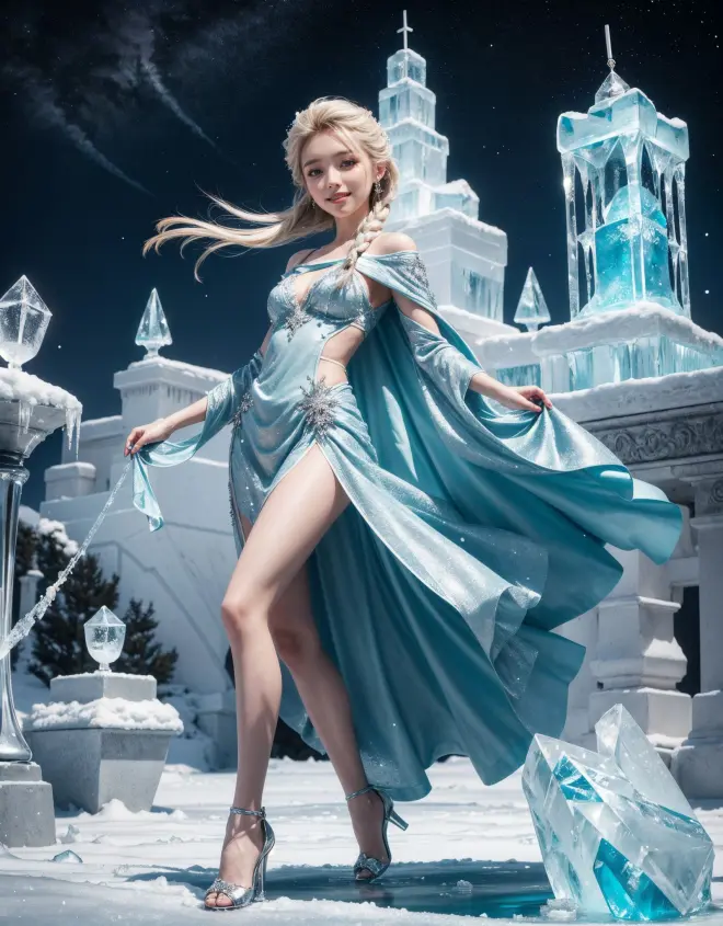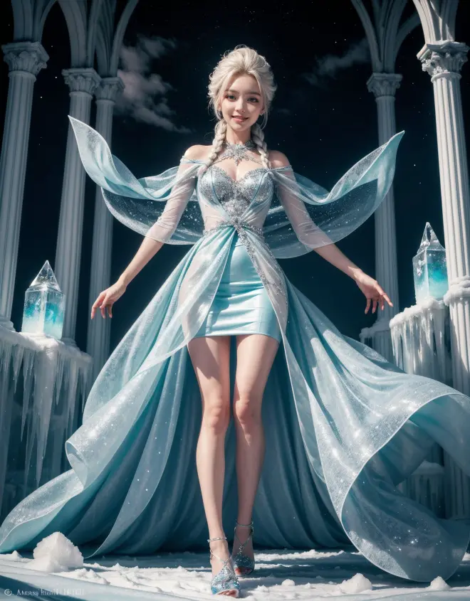 AI画冰雪女王,没有使用任何Lora,无意间实现了不错的效果。