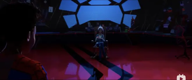 ·此时背景色调偏蓝,上个镜头是明显的红色,且主角背后场景为蜘蛛战衣,不是镜头5中的门。因此,猜测棚屋内部空间挺大的。(后面去看了电影,发现进门有电梯下降)