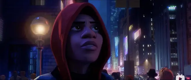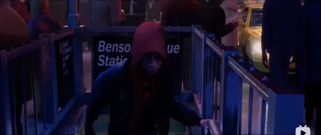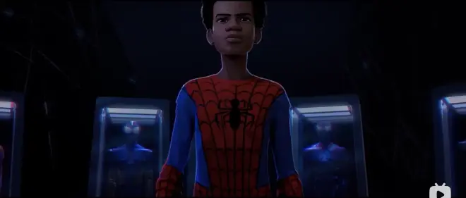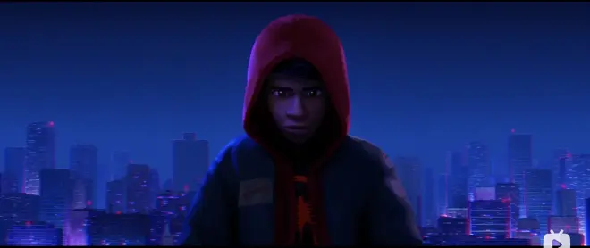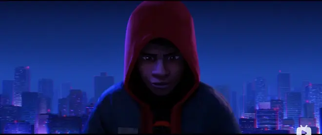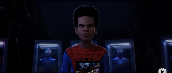 画外音:“you're the best of us, miles” (你是我们当中最强的) —— 暗示主角的不同之处