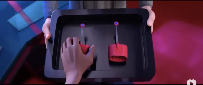 画面中小蜘蛛有一秒的蜘蛛感应(没到截图),代表他想起了这个道具的作用。