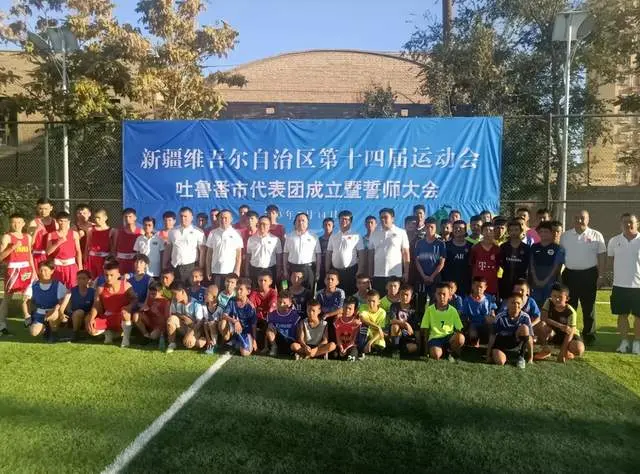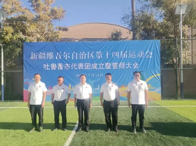 7月14日,自治区第十四届运动会吐鲁番市代表团成立暨誓师大会在吐鲁番市业余体校足球场举行。吐鲁番市文化体育和旅游局党组副书记、局长吾买尔·阿不都拉,党组织成员、文创中心主任塔依尔·托乎提,各区县文化体育广播电视和旅游局主要领导和体育科负责人以及各领队、教练员、运动员代表近100人参加了大会。