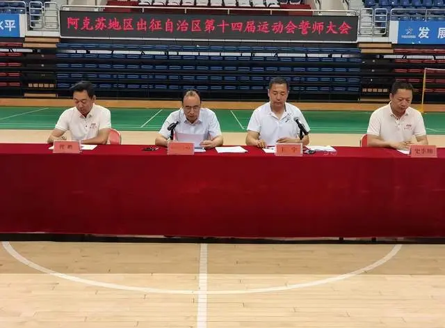 7月15日,阿克苏地区举行出征自治区第十四届运动会誓师动员大会暨反兴奋剂赛风赛纪会议。