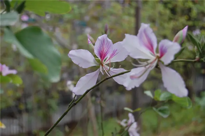我个人认为,羊蹄甲与洋紫荆的主要区别不在花色与花期上,而在花瓣(严格地说应该是花冠裂片)的宽度。羊蹄甲的花瓣较窄,花瓣之间有较大空隙,外观显得瘦弱。洋紫荆的花瓣较宽,花瓣之间常交叉重叠,外观显得饱满。