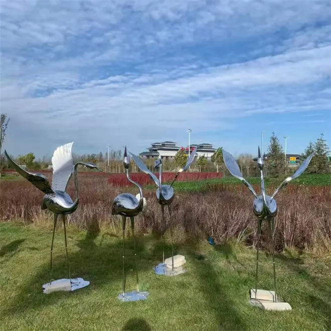 正是由于仙鹤的美好寓意,所以常被用于雕塑行业中,出了常见的铜、石材的仙鹤雕塑,不锈钢仙鹤雕塑现在也非常常见。不锈钢仙鹤雕塑采用304不锈钢锻造成型,表面一般为镜面效果。和仙鹤一样,不锈钢仙鹤雕塑也有着美好的寓意和象征,我们制作的不锈钢仙鹤雕塑不同于传统的不锈钢雕塑的制作方法,我们采用仙鹤钢模和液压机压制成型,省去了人工锻造的大部分成本,只需要人工焊接并抛光即可。